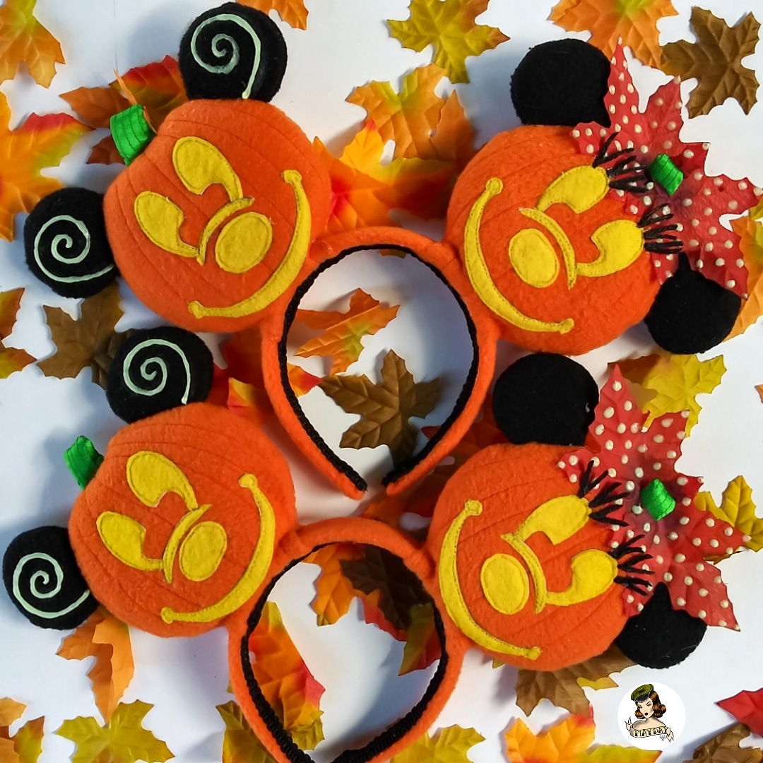 Handmade using orange fleece, black fleece, yellow felt and green silk fabric. The swirls and fall leaves polka dots glow in dark