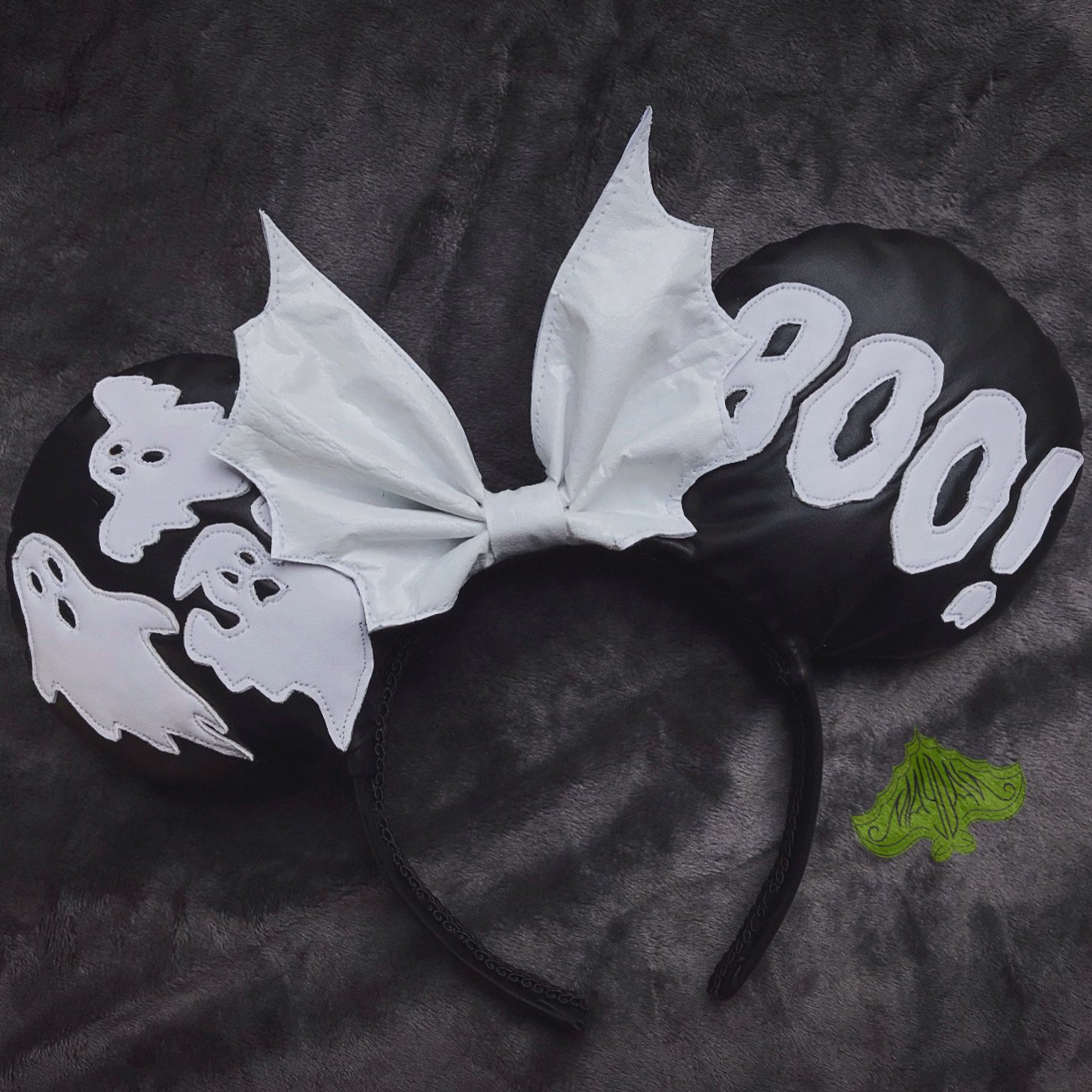 Handmade inspired by Halloween ghosts. handmade using black and white faux pleather fabric. Center of the headband comes with a white faux pleather bat bow